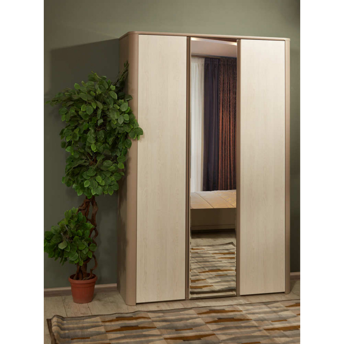 Шкаф трехдверный Лацио является представителем спальни «Лацио». Спокойные тона и фактуры спальни располагают у отдыху, делают пространство легким и уютным. Сочетание глубокого серого и светлого оттенков исключают громоздкость и помогают достичь эффекта зрительного увеличения пространства. Приобретение «Лацио» гарантирует покупателю визуальную эстетику, а так же удобство и практичность применения.